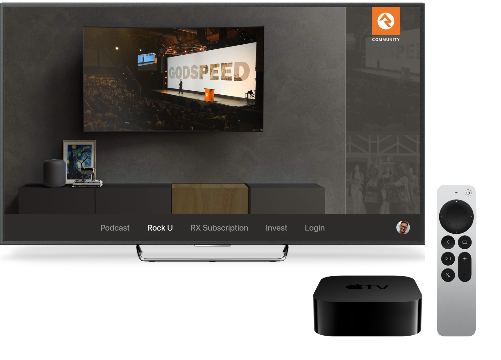 If you'd like to prototype your app at no cost, we've created the Rock community Apple TV app for just that purpose. Download the app from the app store on your Apple TV, check it out.